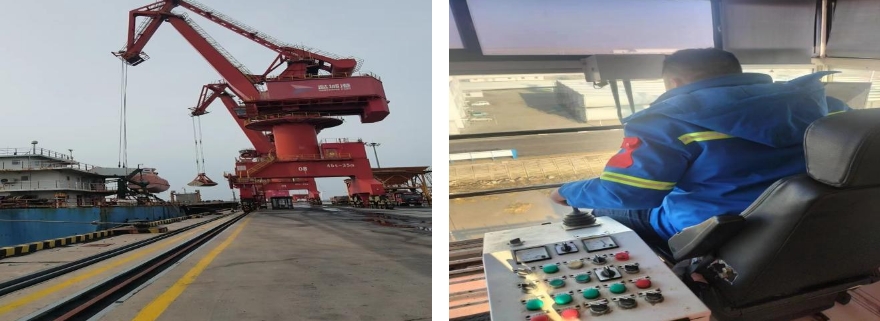 沉闷而悠长的汽笛声刺破了清晨静谧的海港,一艘名为“华宏16”的货船成功靠泊盐城港射阳港区码头,门机工操作着巨大的机械臂,将货船上的货物抓取到漏斗中,指挥员严阵以待指挥着货车到达指定作业点,装卸一气呵成,经过10个小时的协同作战,9000吨机制砂成功完成装卸。标准化的作业流程、并肩作战的坚毅脸庞,展示着盐城港人勇立潮头、拼搏奋进的形象,为赢得首季开门红聚力蓄能。