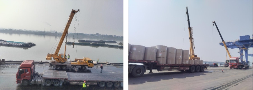 成品纸遇水受潮,极易发霉无法使用,恰逢龙游港区雨季,运输作业一度陷入僵局。物流公司第一时间与客户沟通,确定待天气好转即刻进行运输作业,并合力解决了船舶滞期费等一系列问题,最终顺利将成品纸全部送至客户手中,赢得了客户的认可。