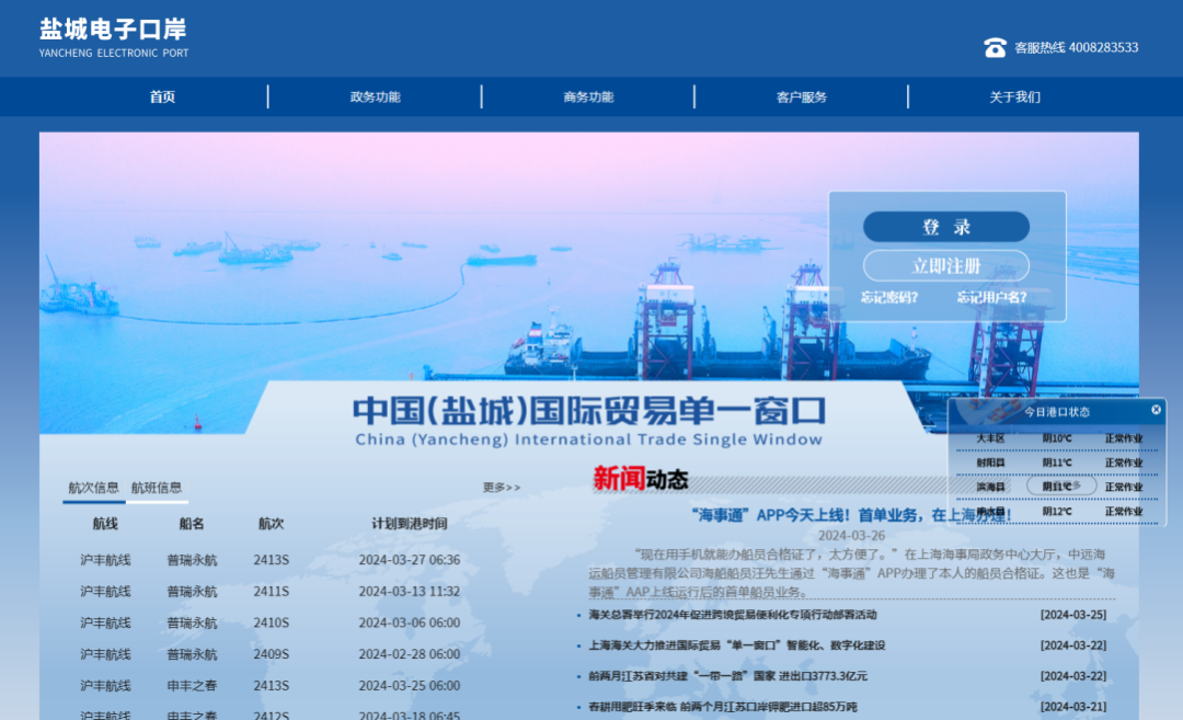 升级优化盐城电子口岸平台现有功能,持续推进盐城港网上营业厅建设,促进数据互通共享,打造面向全流程、全业务、全方位服务的盐城电子口岸+盐城港网上营业厅一体化服务平台。
