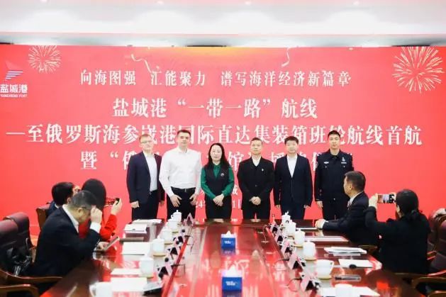 4月21日,盐城港“一带一路”航线—至俄罗斯海参崴港国际直达集装箱班轮航线首航暨“俄罗斯国家馆”授牌仪式成功举行。德信体育 副总经理袁欣,俄罗斯联邦政府经济发展部、农业部俄罗斯出口中心国家馆负责人罗曼诺夫·伊利亚·安德烈维奇,俄罗斯联邦政府自然资源和生态部镍矿出口负责人科里尼卡夫·叶甫盖尼·斯捷巴诺维奇,盐城大丰海事处处长朱龙锦,盐城海关驻大丰港办事处副主任朱天乐,盐城出入境边防检查站边检处副处长张伟,海铁联捷公司海运事业部总监蒯霞、香港公司经理杨森,江苏俄货宝国际物流公司执行董事史素华出席活动。盐城港航运集团、大丰港开发集团、保税物流中心、粮食物流园相关负责同志等参加。