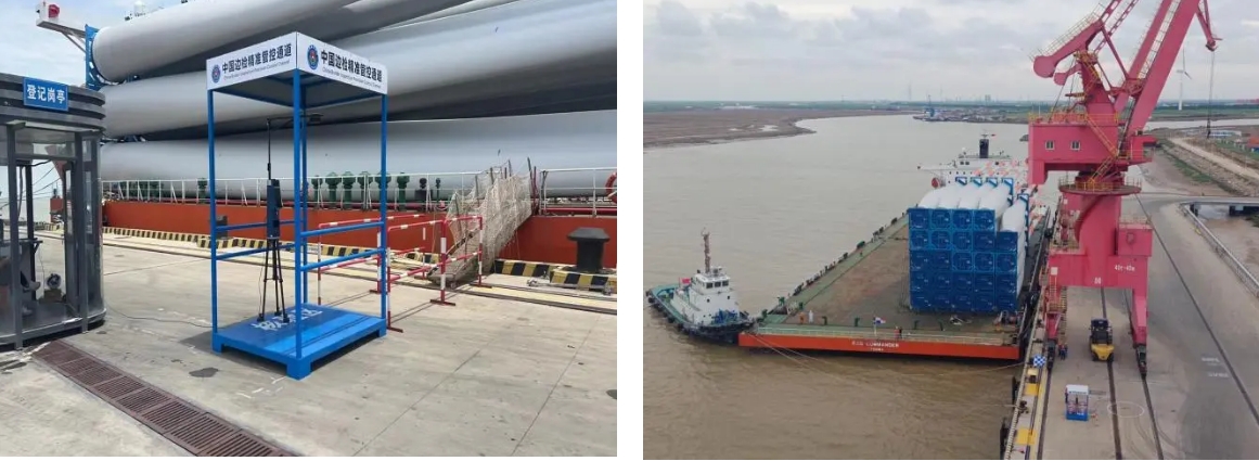 深化服务举措,问题解决“快车道”。为最大限度压缩船舶在港停泊时间,助力这批口岸“最多叶片”顺畅通关,射阳港区提前对货物大小、码头场地、运输环境等综合考量后,运用“边运抵边装船”模式助力货物高效出海。“在‘边运抵边装船’模式下,货物进港后可直接开到码头前沿进行装船,无需等待货物全部集港完毕,经海关、边检实地验核后即视为货物运抵,缓解压港、压车情况,作业效率可以提升超30%。”射阳港区码头负责人表示。