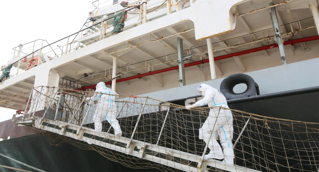 在面对严峻复杂的疫情形势下,滨海港区高度重视外贸船舶入港作业流程规范化管控,推行“四个一”的外贸船舶作业规范,实现“一船一方案”“一船一布置”“一船一总结”“一船一档案”,对每艘外贸船作业流程进行综合风险研判,确定船舶装卸方案、进行人员定岗定责、明确关键部位和重点环节负责人,设置应急程序,全力保障防疫保障物资充沛,确保安全高效地完成外贸船舶作业,实现疫情防控、生产经营“两手抓、两手硬”。