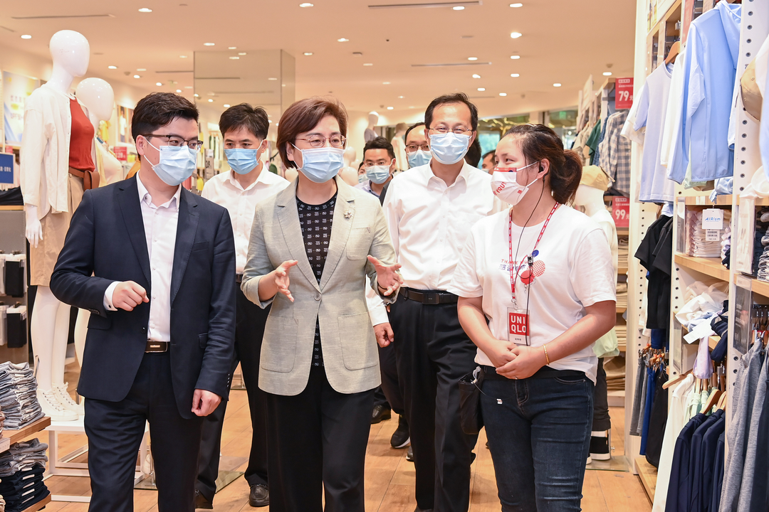 “政策落实得怎么样?目前经营状况如何?还有什么困难需要解决?”徐缨先后来到新弄里和大有境商业综合体,随机走进正在营业的书店、超市、饭店、酒店、运动馆、服饰店和影城等,实地查看复工复市情况,了解企业经营状况,与店主深入交流,询问大家的所思所想所盼,勉励要坚定信心、政企携手,共同努力克服疫情带来的不利影响。各层各级要精准施策、靠前发力,加快落实国家和省市出台的系列组合式纾困惠企政策措施,让各类市场主体更有获得感。