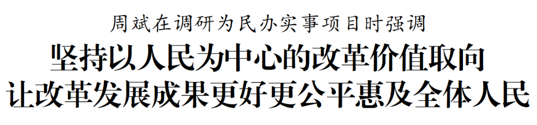周斌在调研中指出,各地各部门要深入学习贯彻党的二十届三中全会精神,从人民的整体利益、根本利益、长远利益出发谋划和推进改革,完善基本公共服务制度体系,推出更多民生所急、民心所向的举措,多办惠民生、暖民心、顺民意的实事。要紧盯目标任务,坚持尽力而为、量力而行,加快推进民生项目落地见效,持续增进民生福祉,为勇当发展新质生产力重要阵地“碳路先锋”提供有力支撑。