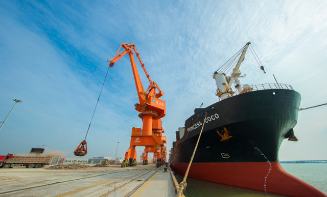 2021年2月1日“可可公主”号货轮顺利进港靠泊,这是滨海港一类口岸正式对外开放后,迎来的首艘外贸货轮。