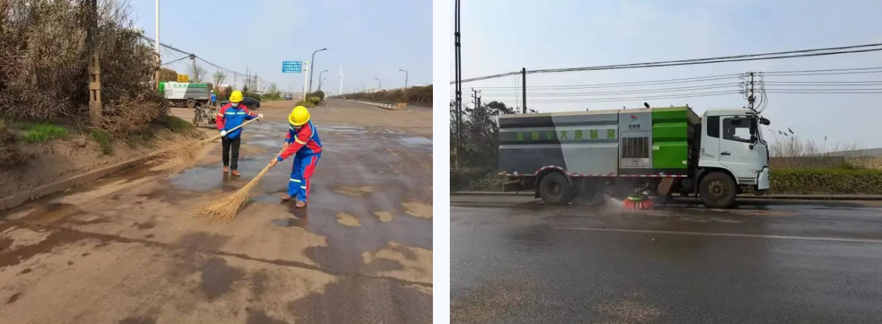 抓好环境卫生整治工作。全面加强生产作业区域扬尘防治,深入推进环境清扫全覆盖,改进清扫方式,划分不同清扫保洁片区,实行定区域、定人员、定职责的管理方式;主要干道坚持一天四扫四洒水,减少因道路清扫产生的二次污染;同时加大道路巡查力度,确保作业车辆无抛洒、全覆盖,保障责任区域环境改善落到实处。
